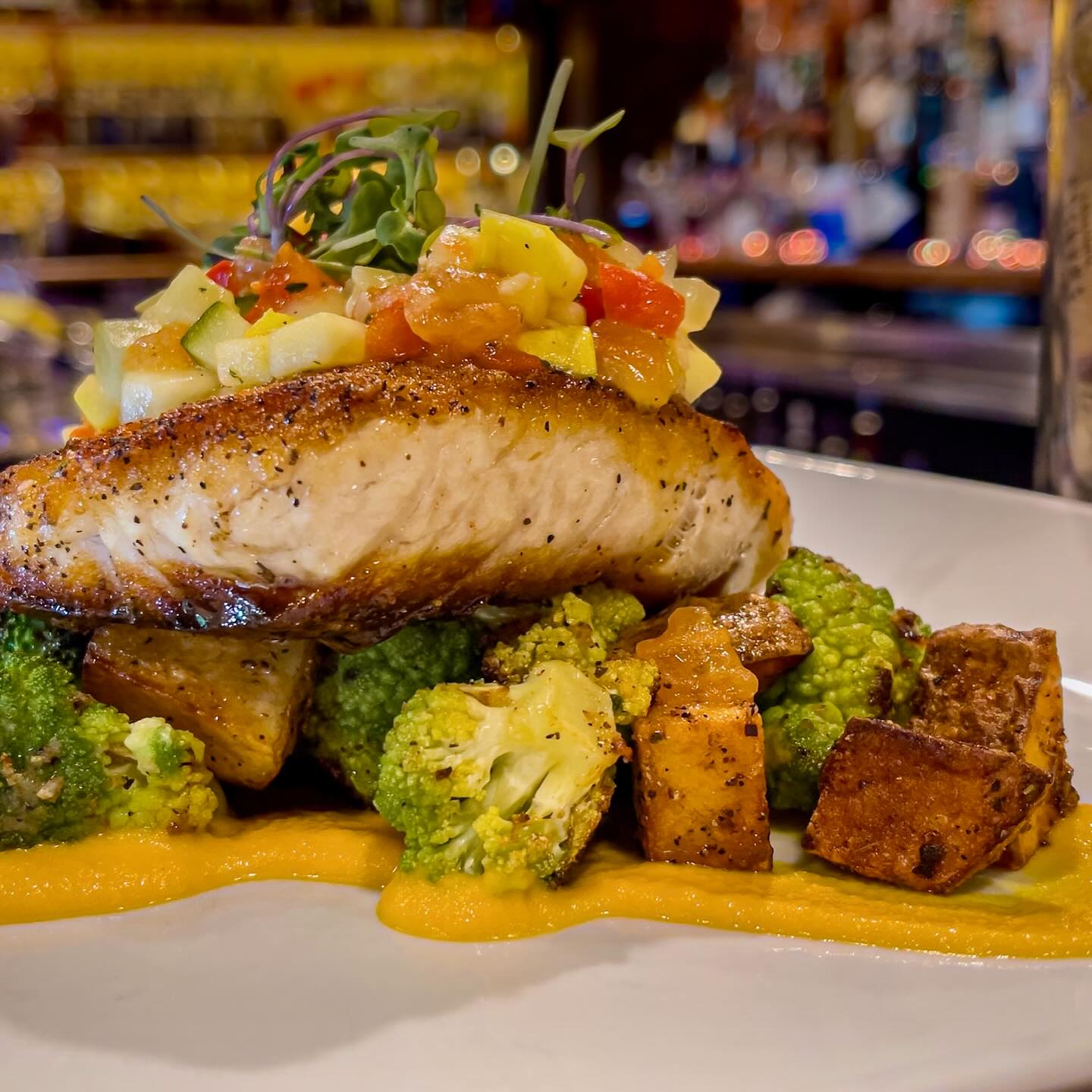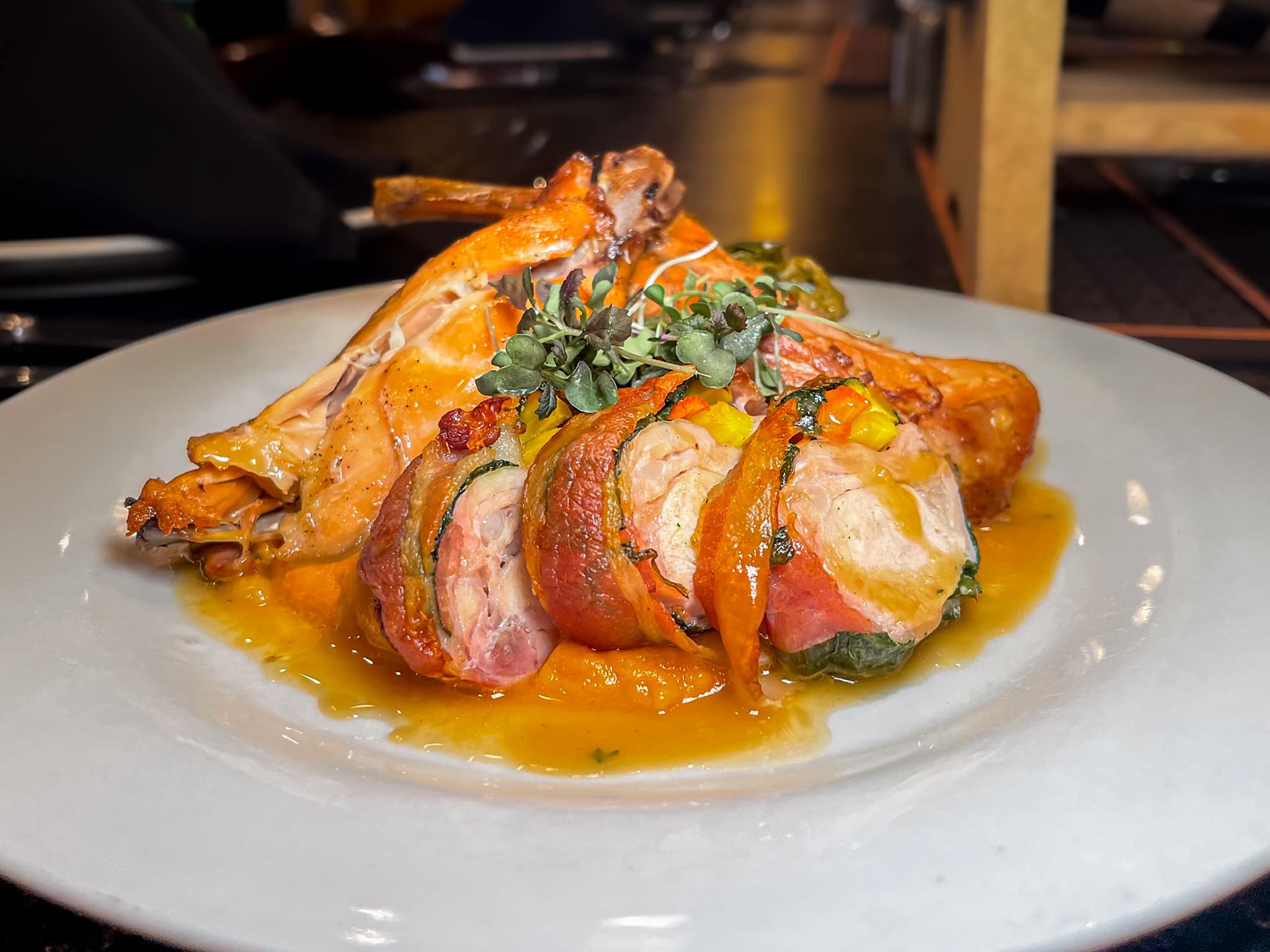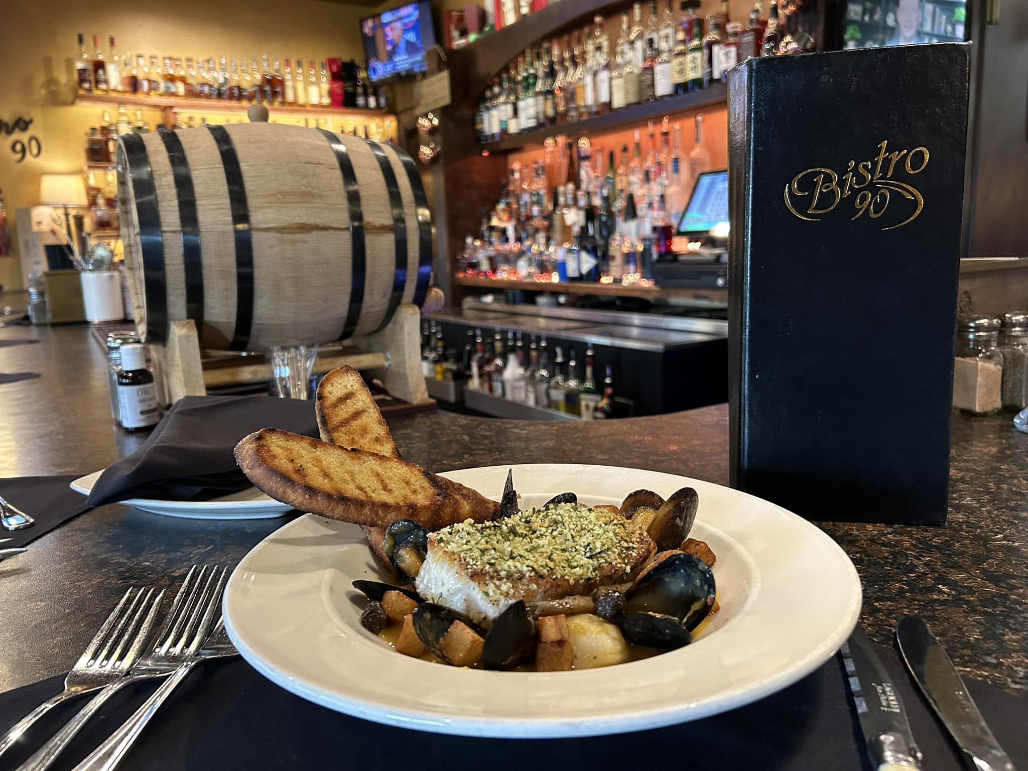 From perfectly seared filets to rich, flavorful ribeyes, every steak at Bistro 90 is dry-aged in-house, a process that enhances tenderness and delivers an unparalleled depth of flavor. Complementing its steakhouse offerings, the menu also features an array of fresh, seasonal seafood dishes, including succulent lobster tails, delicate pan-seared fish, and savory crab-stuffed creations. Bistro 90 also pays homage to its Italian roots with a selection of homemade Italian classics, from creamy risottos to house-made pasta dishes that are as comforting as they are refined. Each dish is crafted from scratch with meticulous attention to detail and a commitment to using only the finest ingredients.